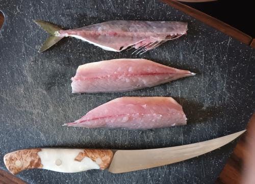 Nakon narudžbe prošlo je 5 dana do dostava što je OK. Uredno zapakiran proizvod. Prilikom otvaranja, neuobičajena zanimljivost: miris. Ugodan miris sa mirisne trakice iz ambalaže (čvrste kutije) noža. Nož je zapakiran u tvrdoj kutiji sa magnetskim zatvaračem, zaštitom oštrice i vrha i ležištem koje odgovara geometriji noža. Uravnotežen je, drška je ugodna za držanje, oštrica je izuzetno dobra, doslovno brije. Nož je identičan foto prikazu na web stranici. O samoj tvrdoći čelika ću moći pričati tek za mjesec, dva, no djeluje ok. Nož je kompaktan, čvrst i spreman za "hard work". Jedina potencijalno negativna stvar je težina: za moj ukus nož je mrvicu pretežak, no kako ga neću rabiti 10 sati dnevno, mislim da i nije neki bitan nedostatak. Uglavnom, više nego zadovoljan, čekam prvo oštrenje koje će, nadam se, potvrditi moje mišljenje. Inače, na slici je mala lokarda koja je, po mom mišljenju, dobro filetirana zbog minimalne količine mesa na kostima za što je zaslužna oštrina noža.